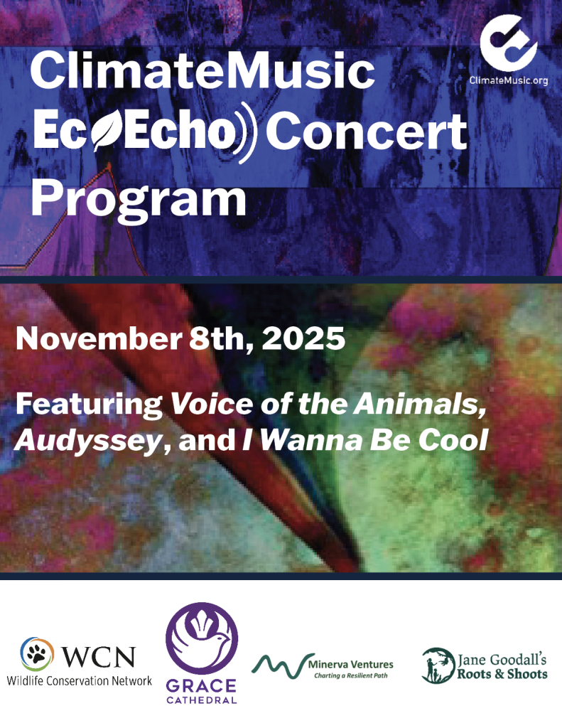 The concert will feature live performances of two ClimateMusic compositions, Audyssey and Voice of the Animals, followed by an in-depth conversation including a climate scientist and audience engagement. There will also be a special live youth choir performance of The Be Cool Song by Oakland Interfaith Youth Choir at the end of the event.